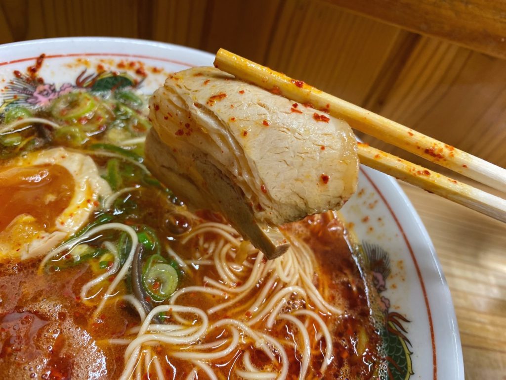 唐辛子の下に隠れていたチャーシューも文句無し。