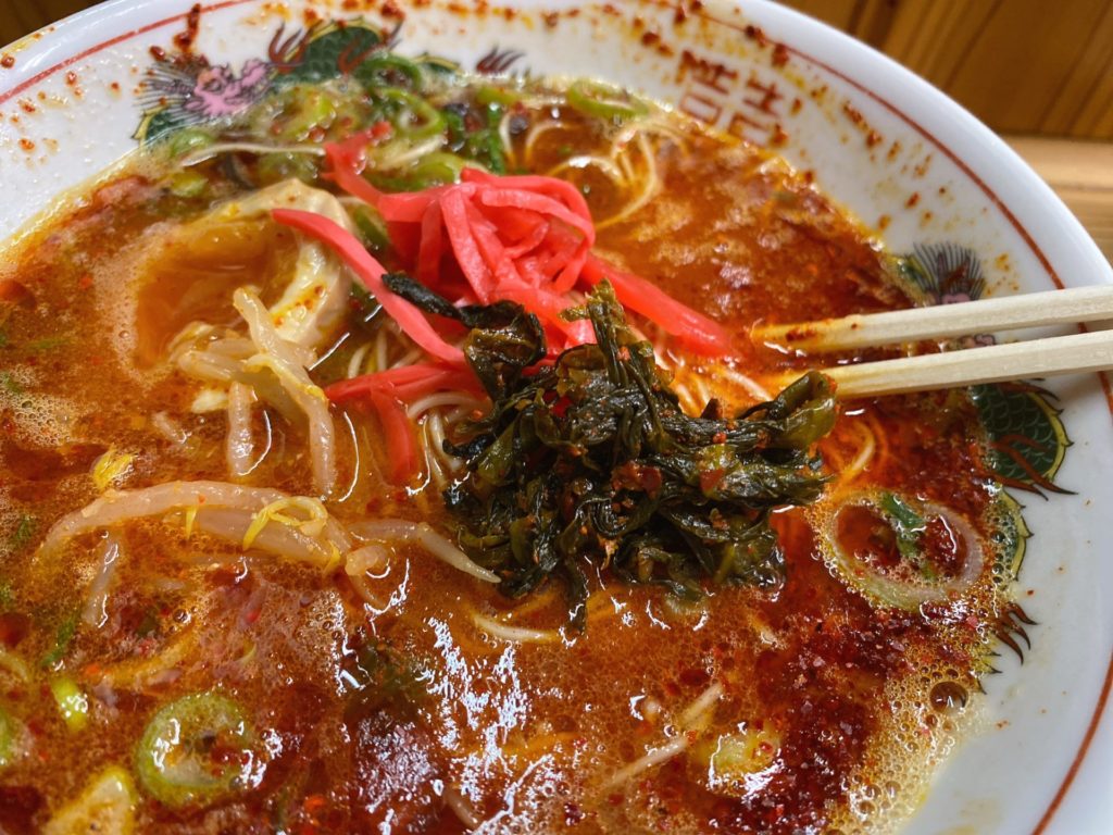 紅生姜はもちろん、野沢菜もこのラーメンには合います!