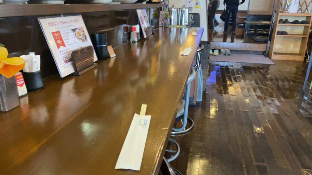 座席は、私の座ったこのカウンターが4席と、その背中側に4人用テーブルが2つあります。