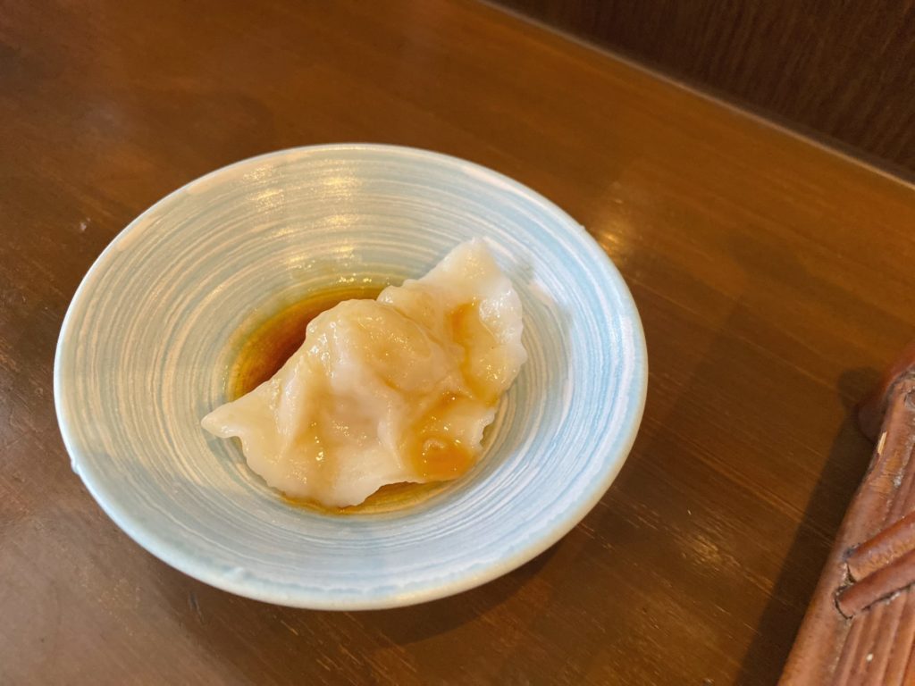水餃子ですが、甘酢のタレで皮はモチモチ、中はジューシーで美味~~。