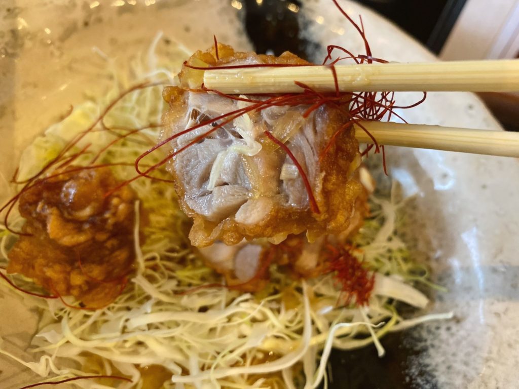 鶏肉自体の味もジューシーで美味しいし、キャベツやタレが一緒に食べると、とてもいい。