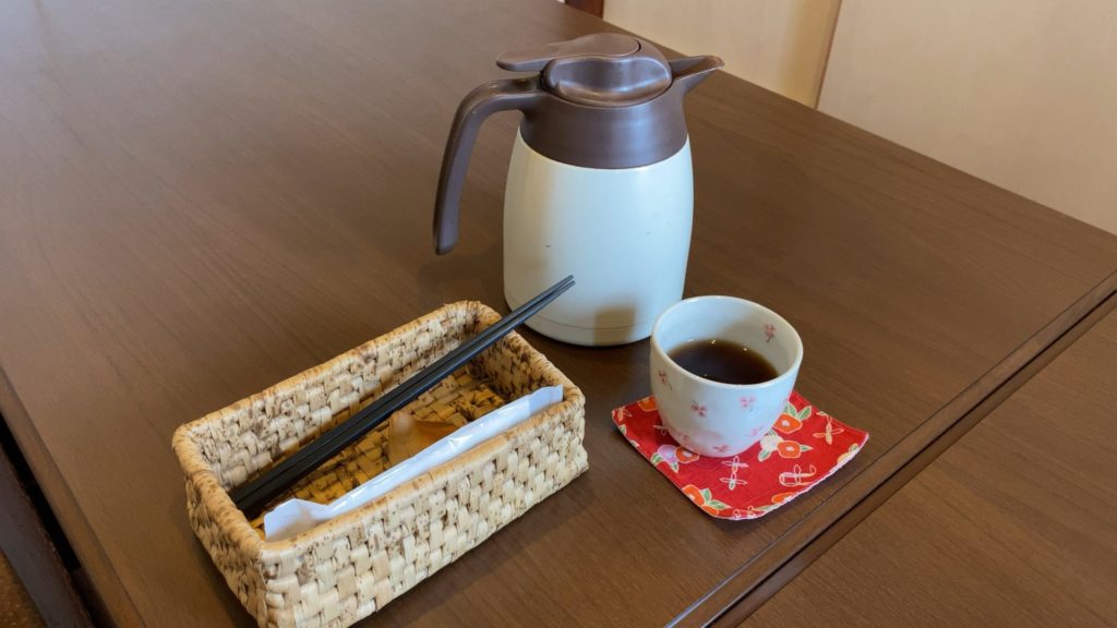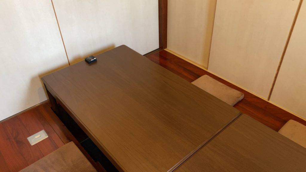 とりあえず掘りごたつ式の座卓に、贅沢に一人で座らせて頂きましたが、掘りごたつの中の床がホットカーペットになっています!