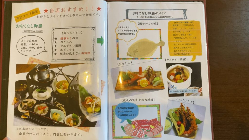 私が選んだのが、こちらの平日限定の「おもてなし御膳」です。