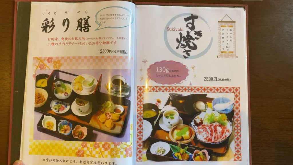 彩り膳や、すき焼きも美味しそうですが、平日のランチとしてはちょっと予算オーバーです。