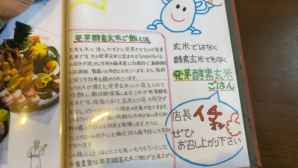 白米はおかわり自由で、発芽酵素玄米のおかわりは別途100円要るとの事ですが、最初の1杯目は同じ料金で選べます。