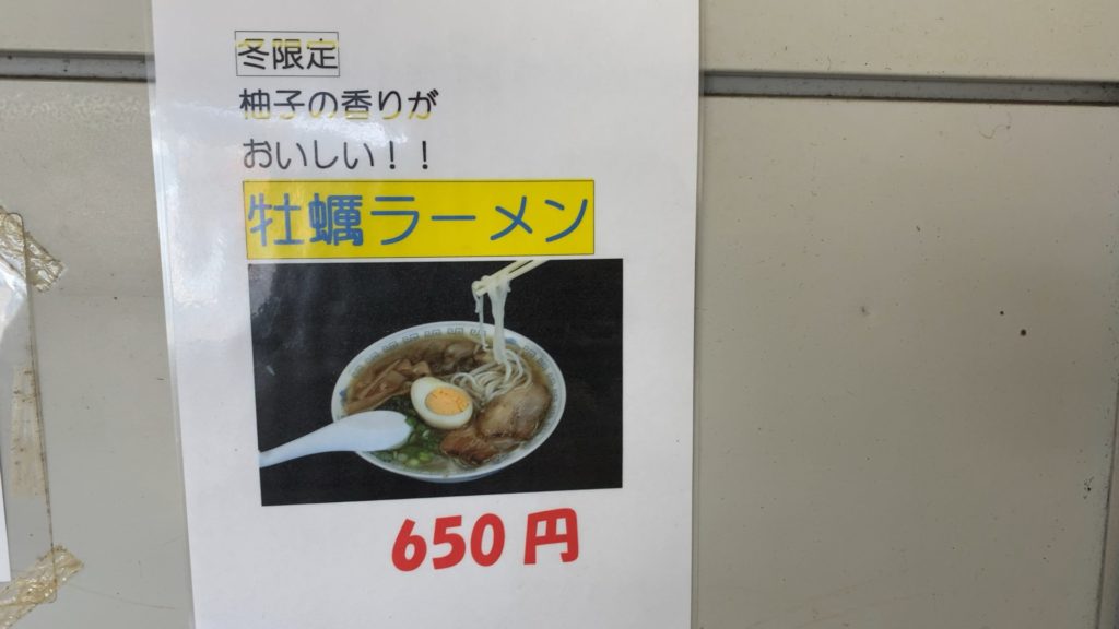 この牡蠣ラーメンを注文して、壁に貼ってある他のメニューをチェックすると、