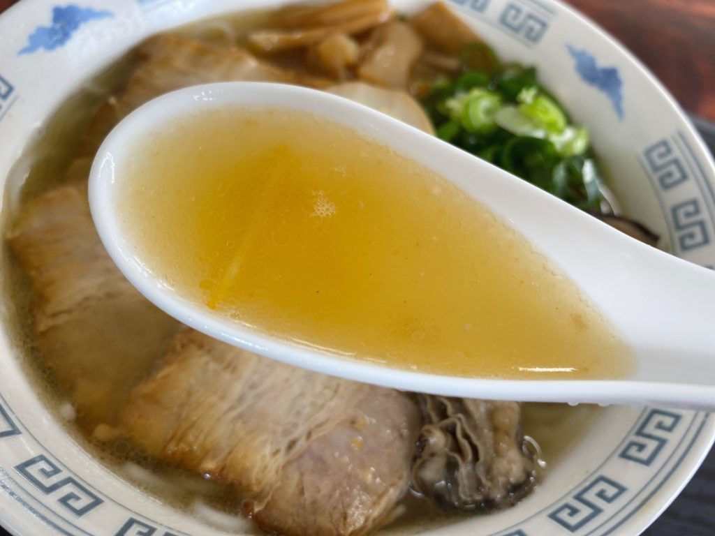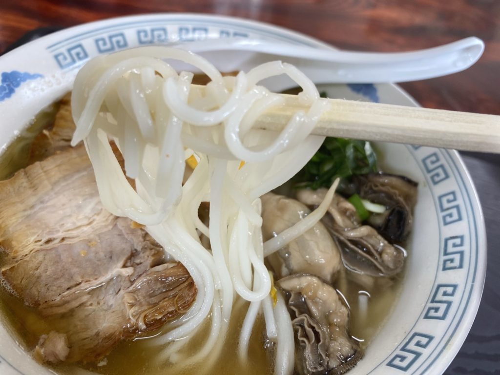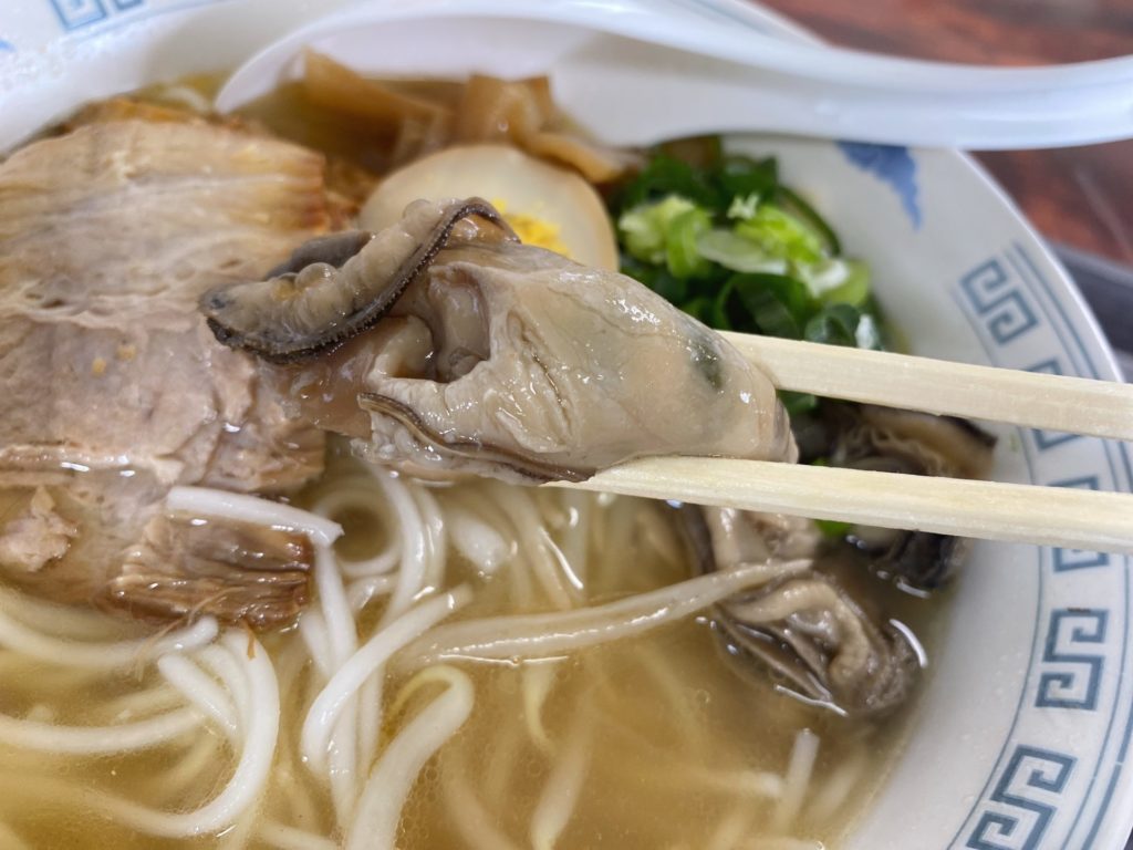 中粒の牡蠣が3つ、そしてチャーシューが3枚で、存在感がありますね~。