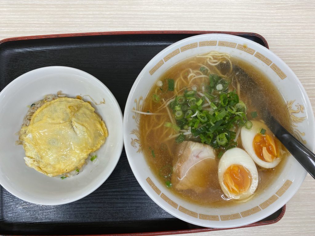 ランチを注文して約5分でミニチャーハンと醤油ラーメンが来ました。