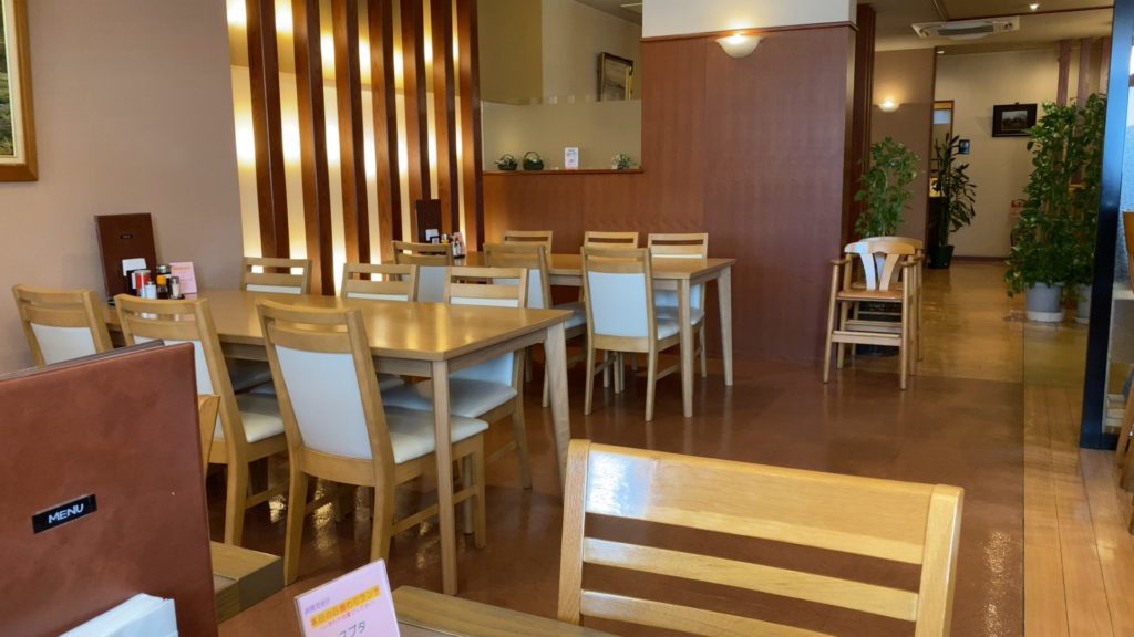 見えているだけで、4人用テーブルが3つ、2人用テーブルが3つ、そして6人用テーブルが2つあります。