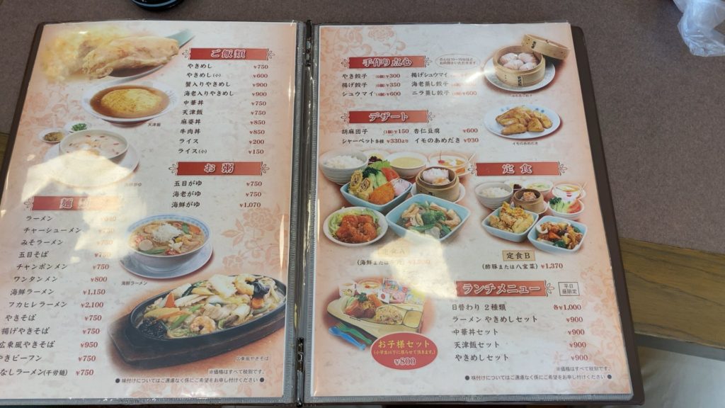 中華料理店 又一別館のメニューは種類が豊富 その中でオトクな日替わりランチの酢豚を選択するも、中華丼や炒飯も美味しそう!