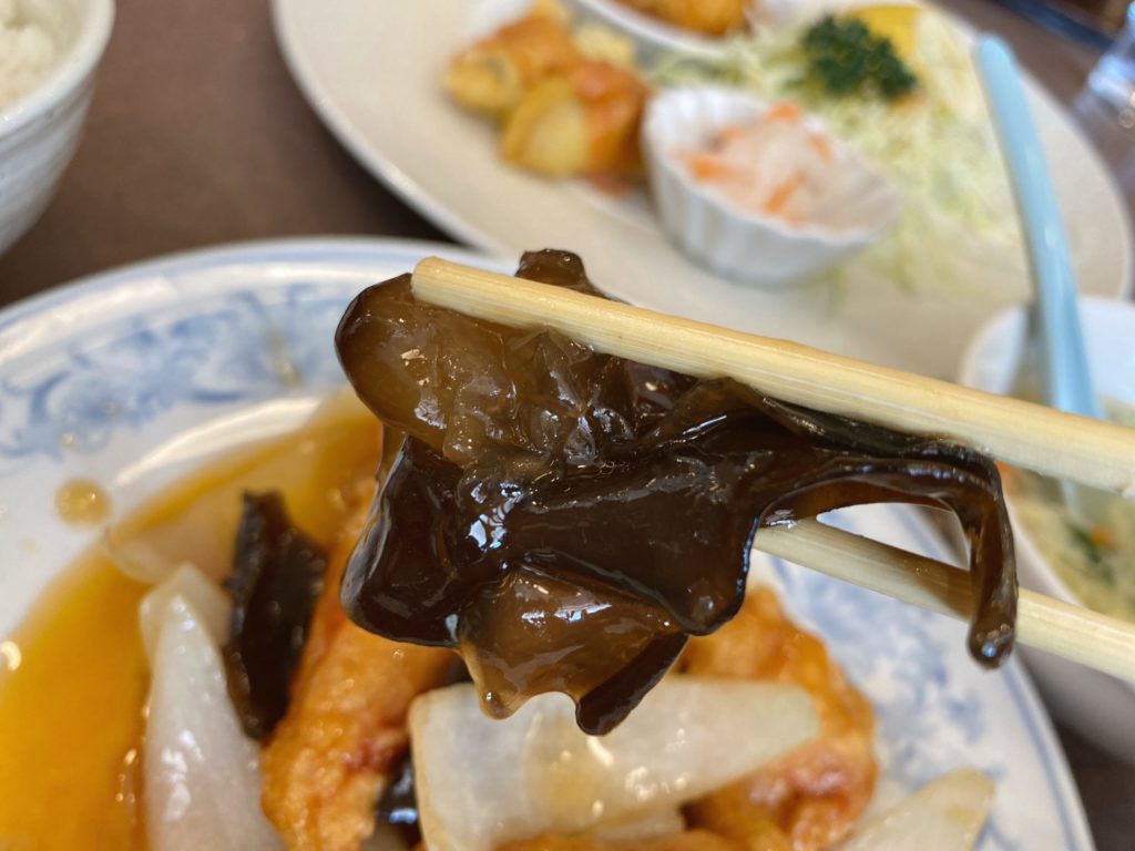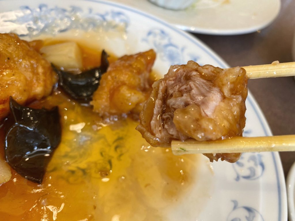 あと、タケノコ、ニンジン、タマネギが大きくカットしてあり、「噛む」作業の心地よさを感じながら、甘酢のあんかけがとても合っていました。
