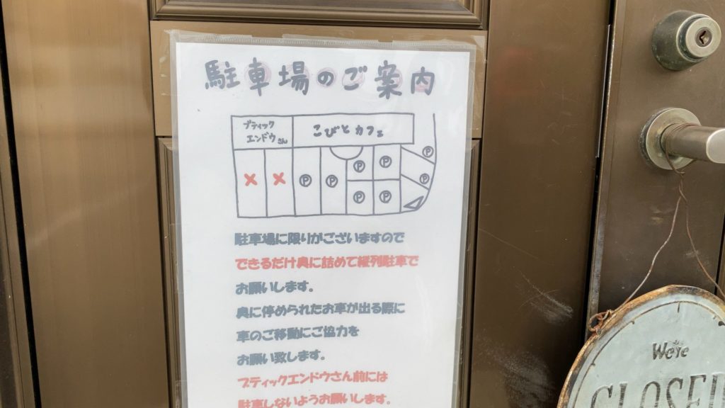 駐車場のことも気になるので、早めですが、こびとカフェの駐車場に向かい、開店5分前の10時55分に到着しました。