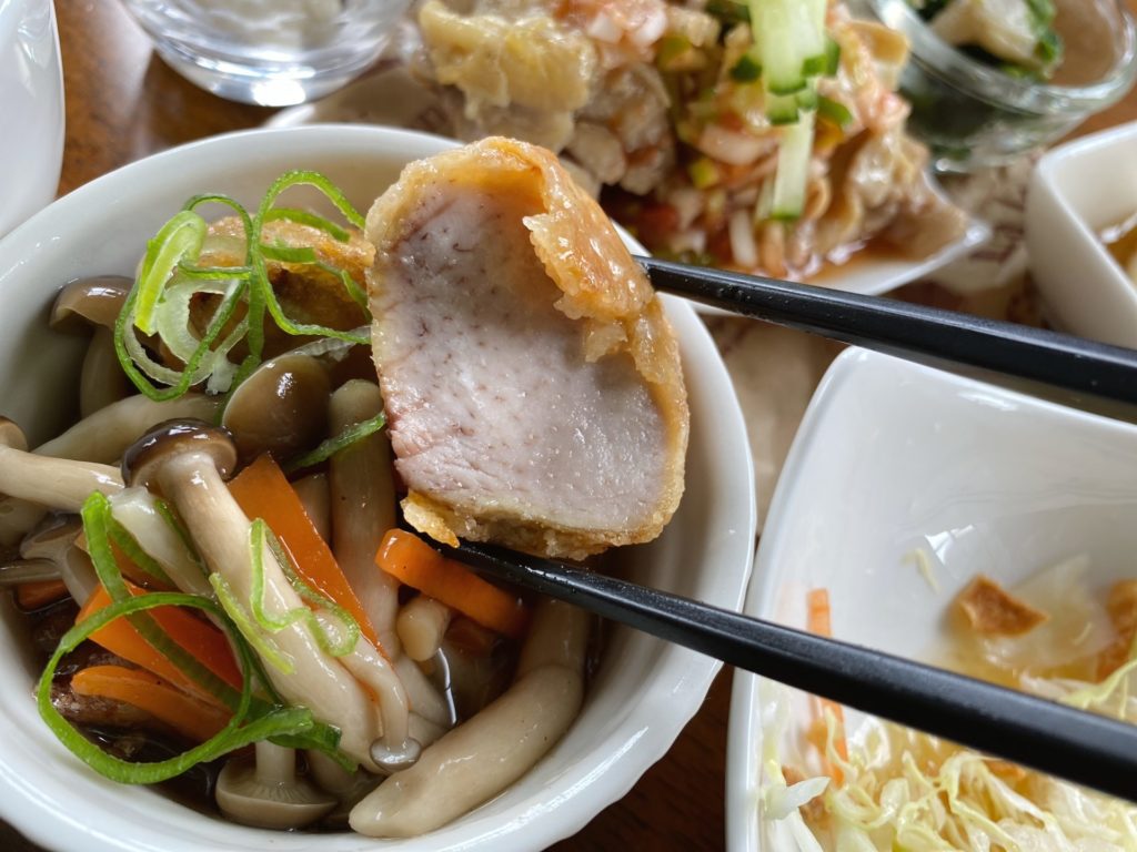 まず、「マグロの竜田揚げ和風きのあんかけ」から頂きます。