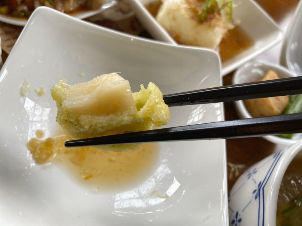シラス添えのレンコン、薄味の出汁が上品でフワフワの揚げ出し豆腐等も、十分満足できました。