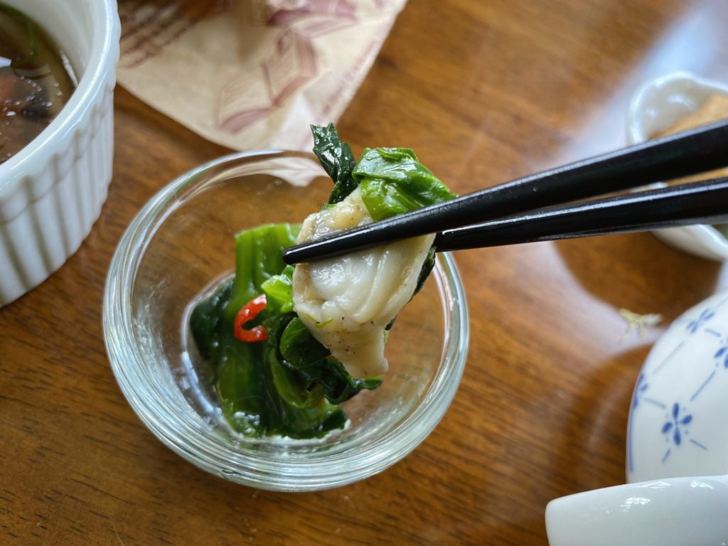 アサリと菜の花(違うかも)のピリ辛の一品でした。