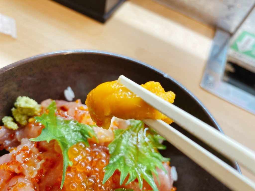 ウニにイクラ、トビコが散りばめてあり、マグロやハマチ系の身も入っています。