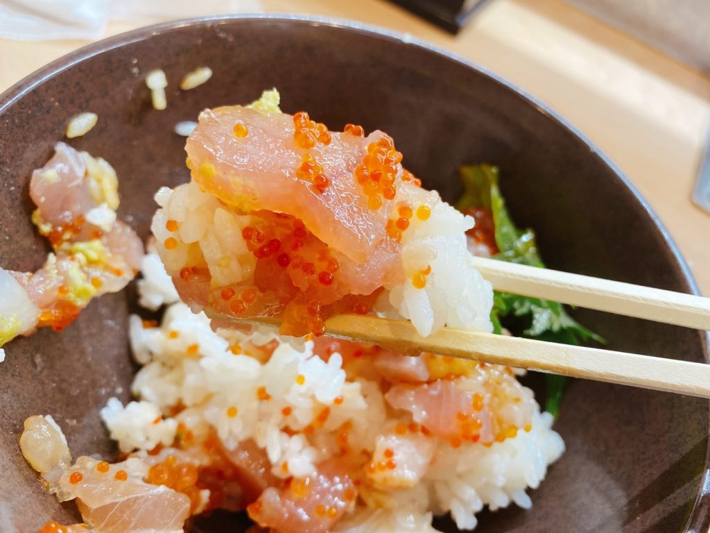 トビコのプチプチ感もほどよくアクセントになって、端の身ながらも量が結構あってお腹が膨れてきます。