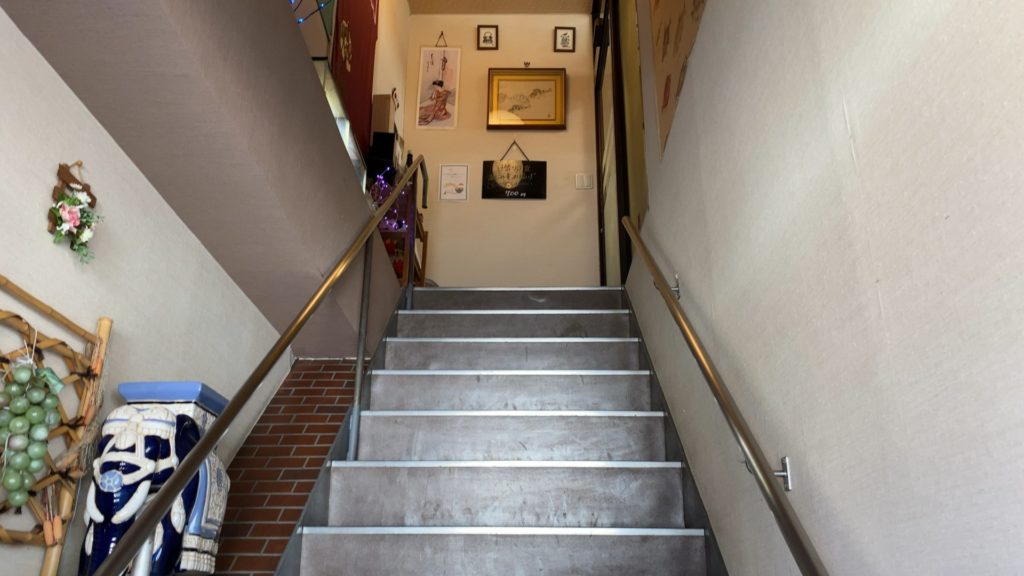 1階は魚屋さんで、青いテントの所から、2階に上がったところが「はまゆう」です。