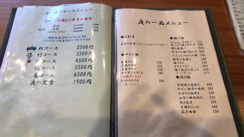 松竹梅に鶴亀のコース、金額的には高額になりますが、普通に飲みに行く金額と考えれば、亀コース、行ってみたい!!