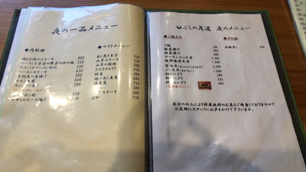 それに最初は、看板の店名の平仮名部分、「ぶしの」が読めませんでしたしね 笑