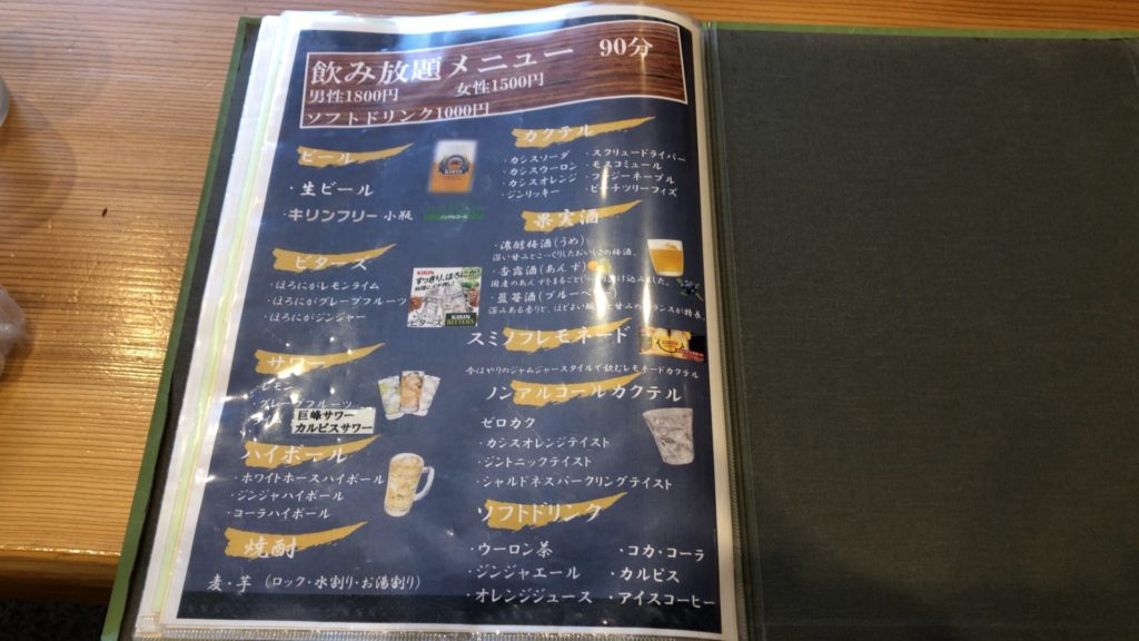 さすがに、日本酒は入ってないようですが、飲み放題にこれだけの種類があればOKでしょう。