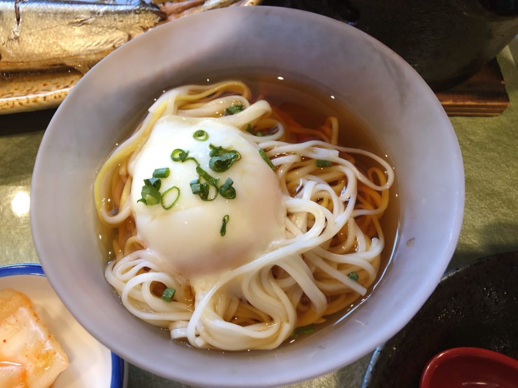 出汁の味がちょっと濃いめでしたが、温泉卵を出汁に溶かしてやって食べると、ちょうどいい味になりました。