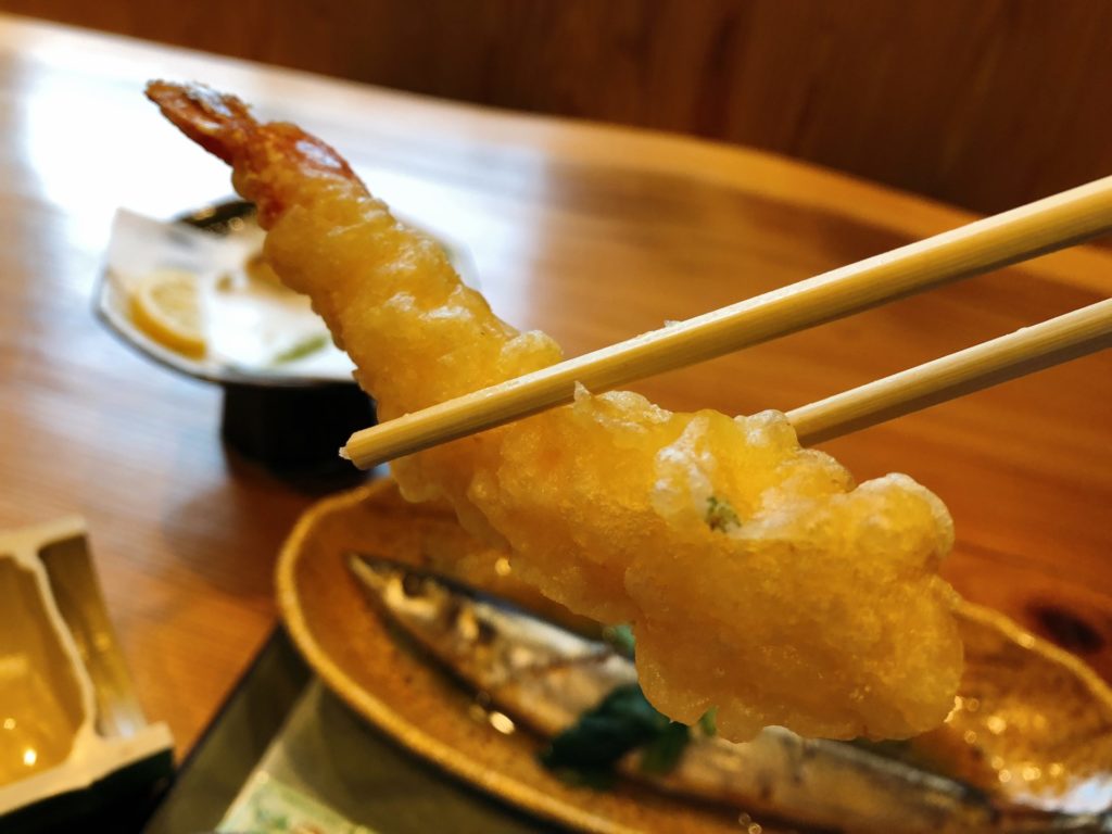 でも和食屋さんで食べる海老天に比べると、ちょっと衣が物足らない感じかな。