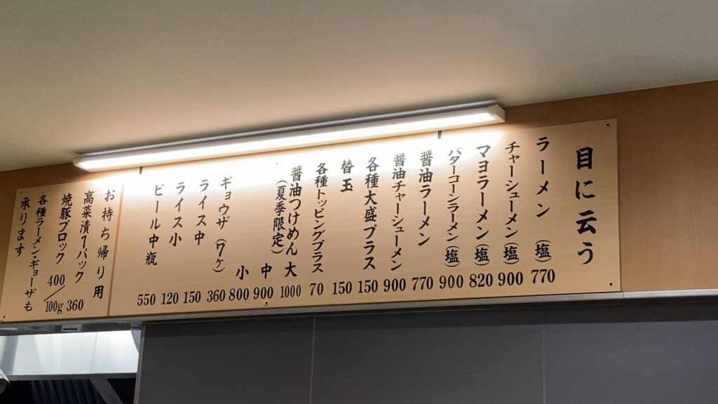 そしてメニューですが、こちらは各テーブルに置いてあるのではなく、厨房側の壁の上にドーンと掲げてあります。