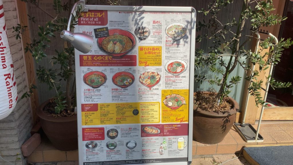 隣の青い看板は隠岐の島ラーメンで、別のお店ですが、赤と青・・・そしてどちらも島つながりってことで妙に気になります。