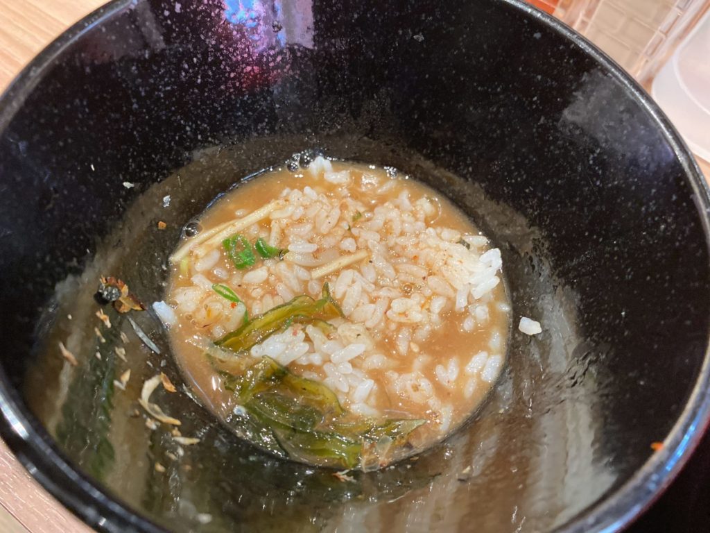 ご飯が残り少なくなったところで、スープを投入~~~~