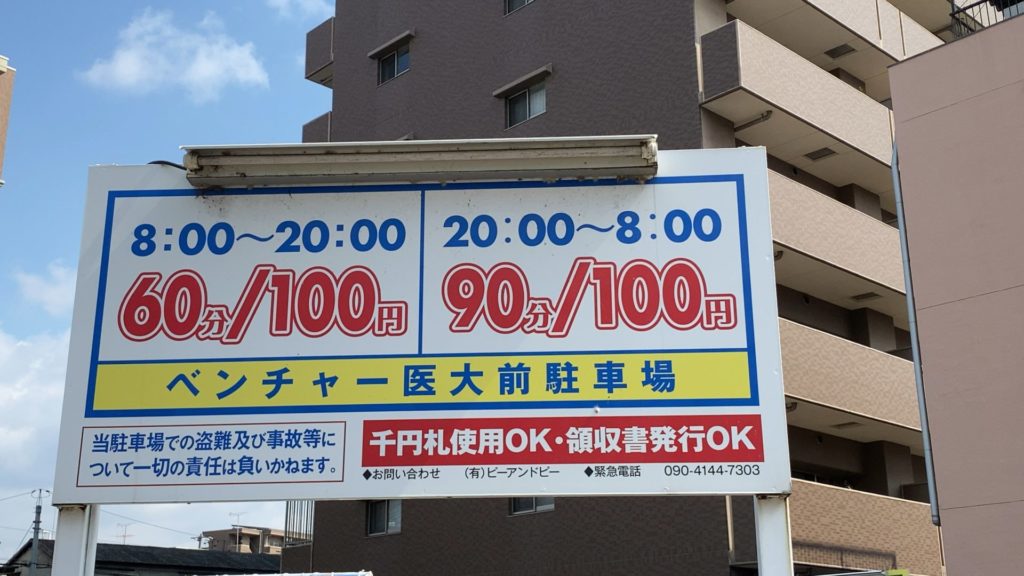 ただ、駐車場がありませんので、車の場合は、近くのコインパーキング等に停める必要があります。