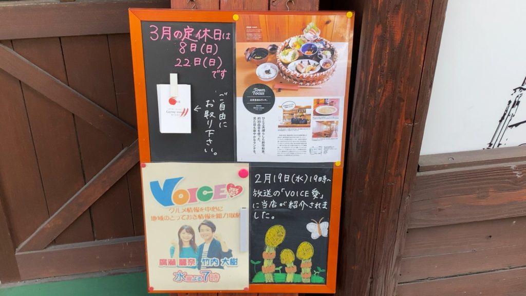 私たちも玄関に出されていた、先月ローカルTV「VOICE愛(ラブ)」で紹介された時の写真等を見たりして開店を待ちました。