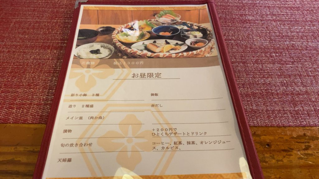 ランチメニューは、昼限定の花籠膳のみとなりますが、メインが魚料理か肉料理かを選ぶようになりますので、店主の奥さんが聞いて回っておられます。
