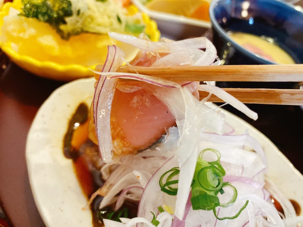 下のお皿がスパイシーチキンですが、初鰹の藁焼きがこちらです。