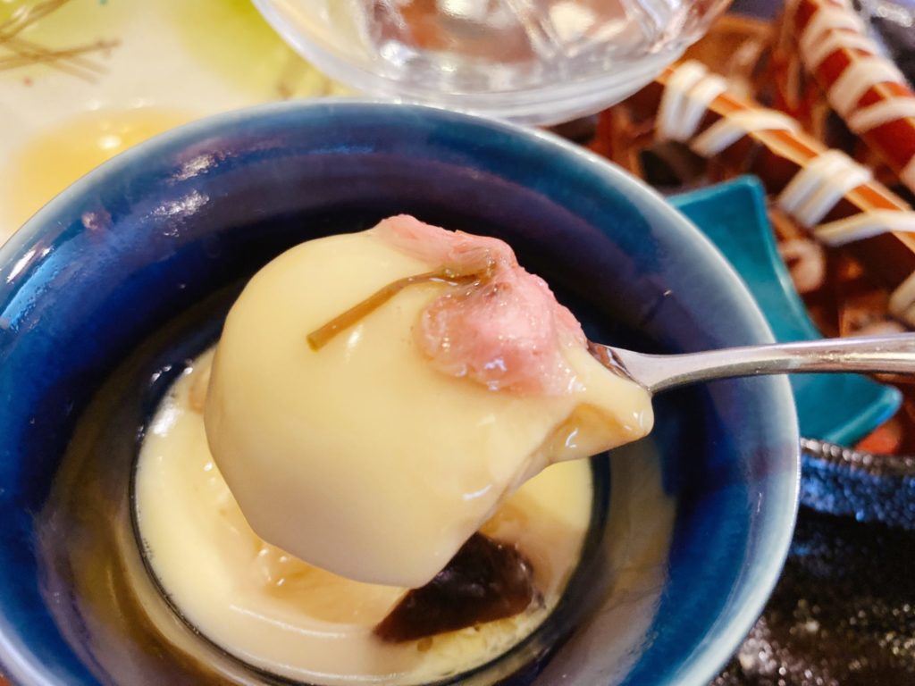 茶碗蒸しもトップに桜の花びらの塩漬けが乗っていて、いいアクセントになっていましたね。