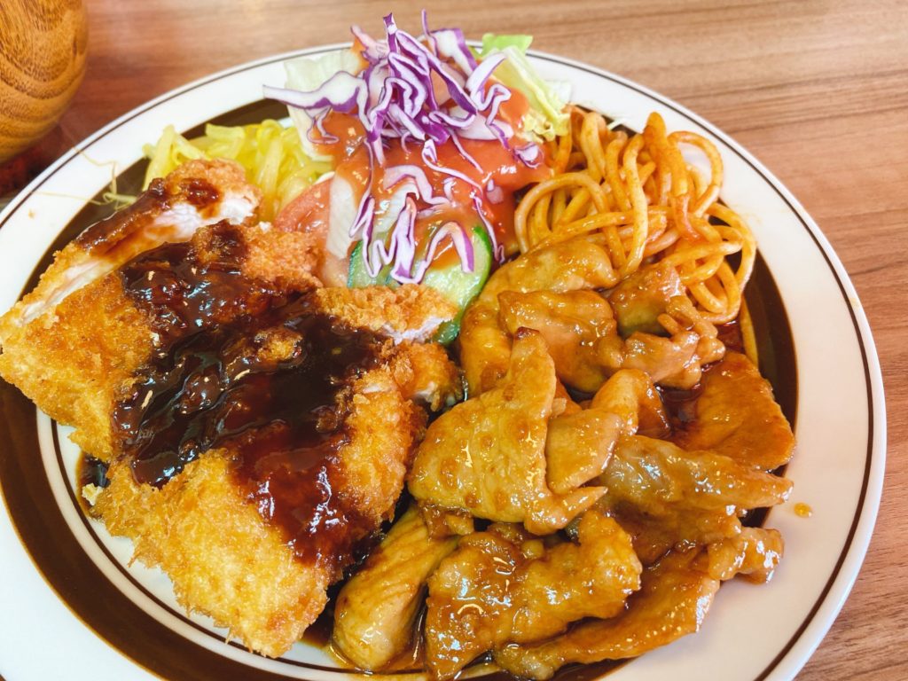 総社市役所真向かいの 洋食の店 ブーン のチキンカツ&豚ロースの焼肉がセットになったAランチは味も量も文句無し!