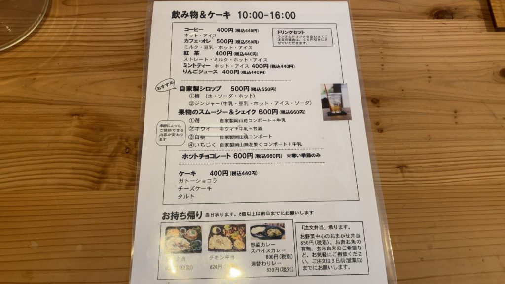 こちらが飲み物とケーキのメニューと、お持ち帰り分になります。
