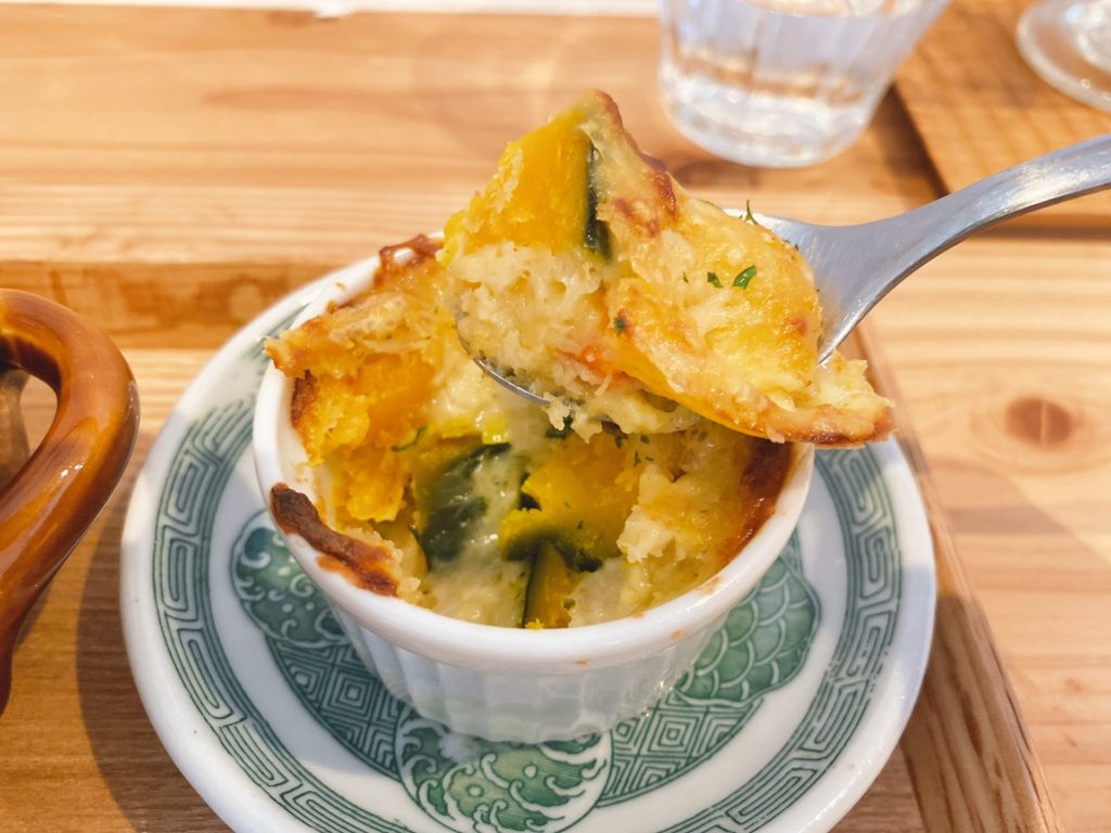 カボチャのチーズ乗せオーブン焼き、といった感じのこの料理。