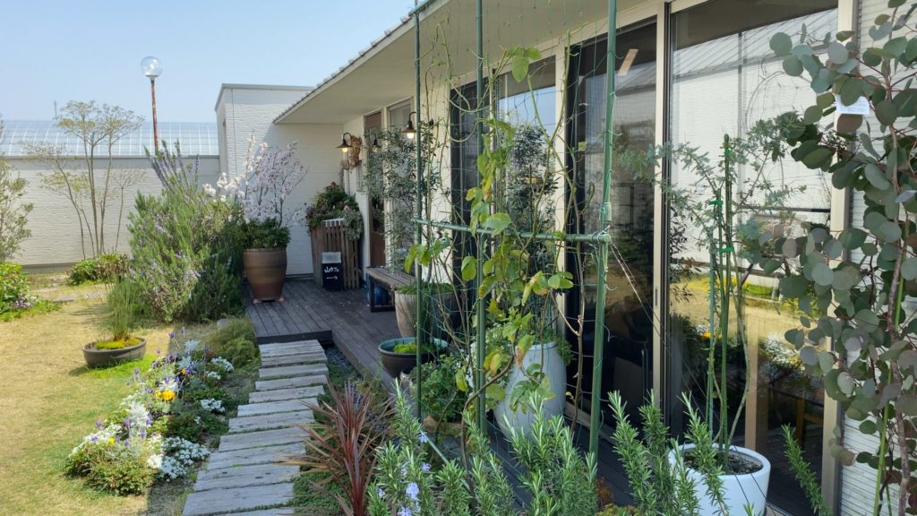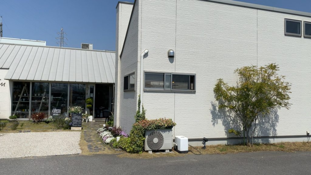 正面のガラス張りの建物がお店かと思いましたが、こちらは10時から営業されているお花屋さんでした。