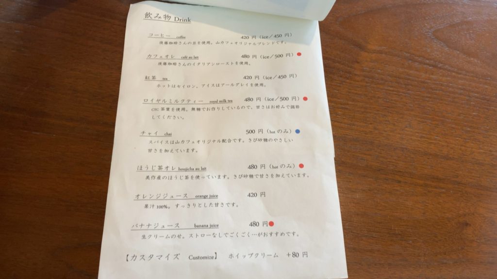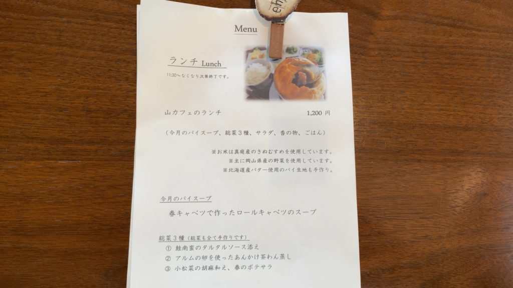 一通りメニューに目を通して、山カフェのランチをお願いしました。