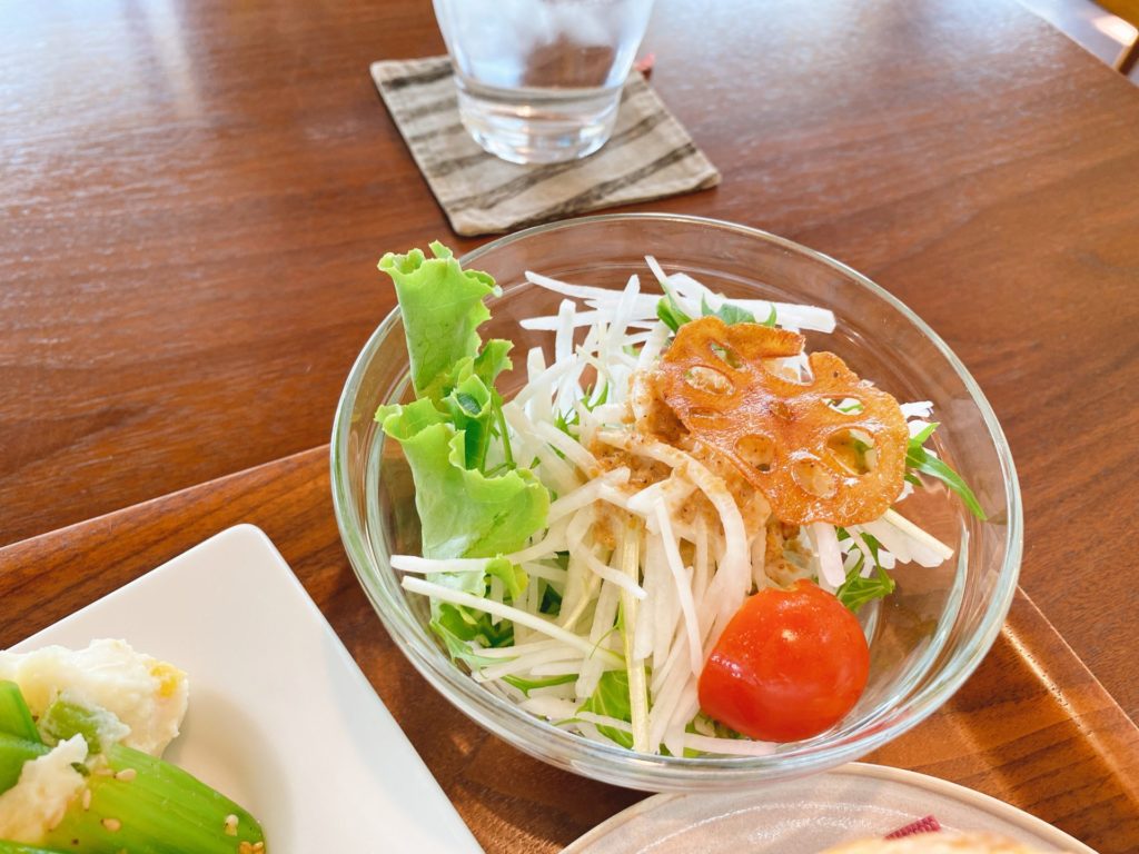 大根のサラダですが、レンコンチップと一緒に頂くと、食感・味ともに最高!