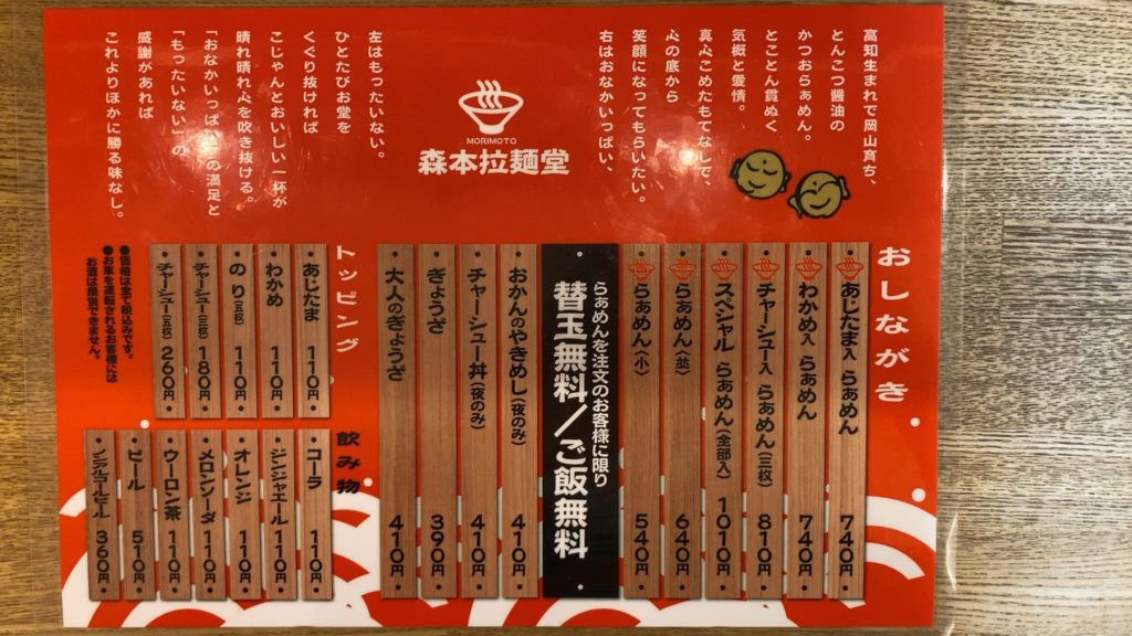 森本拉麺堂、ラーメンも美味しかったですが、接客に「心」を感じました。