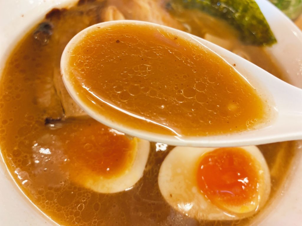 コクのある豚骨を、カツオが優しく包み込んだような感じで、旨味と甘みが舌の上を通過していきます。