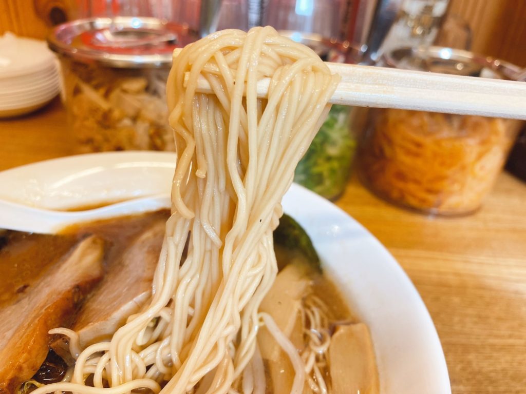 デフォで少し硬めながらも、もう少し硬くてもいいかなって感じですが、しっかりとスープを連れてきてくれて相性もバッチリ!