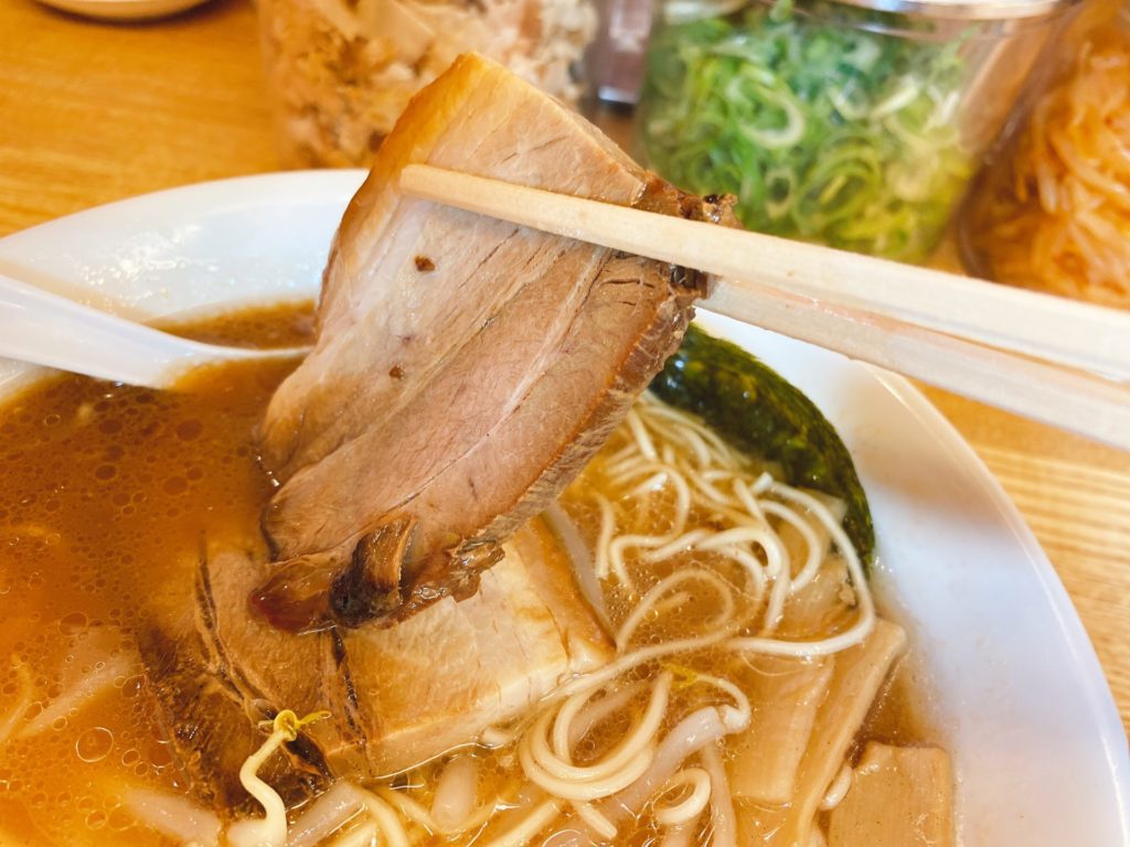 豚バラのチャーシューも、とろける柔らかさではありませんが、程よい柔らかさでいい味が染み込んでいます。