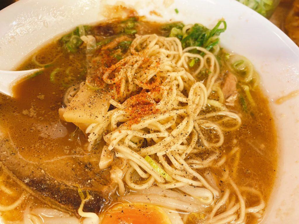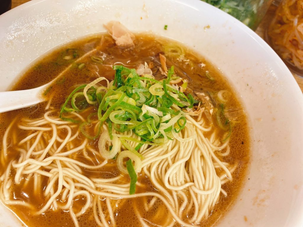 森本拉麺堂の鰹と豚骨のWスープは、初めての味だけどクセになりそう!魚介系好きには堪らない1杯で、無料の替玉までオーダー