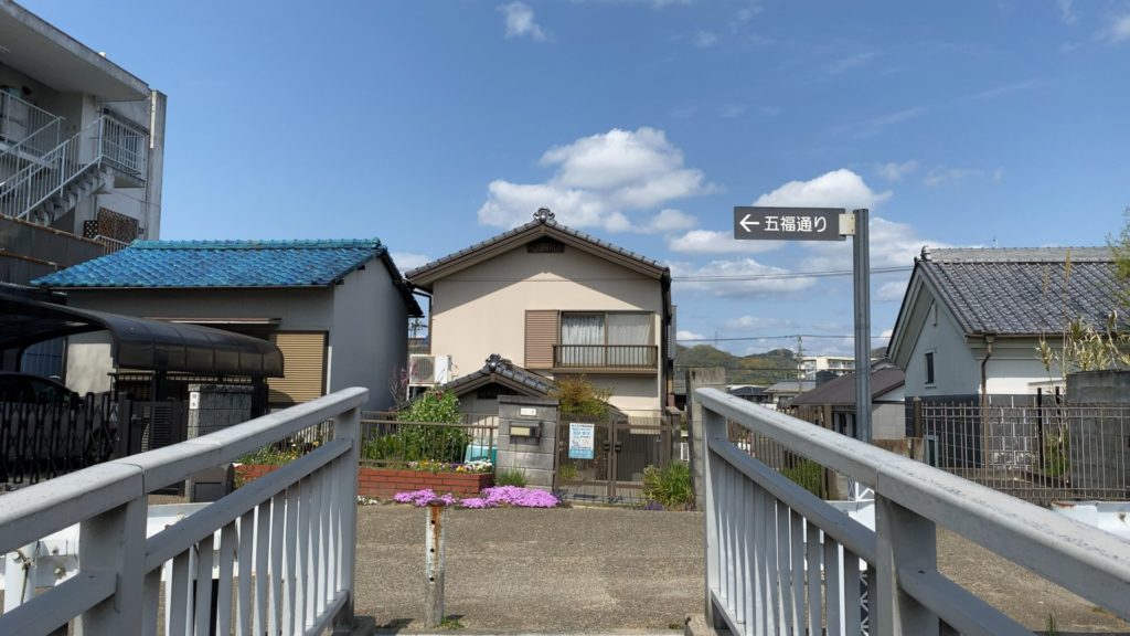 橋を渡ると「←五福通り」の案内看板がありますので、左に曲がってください。