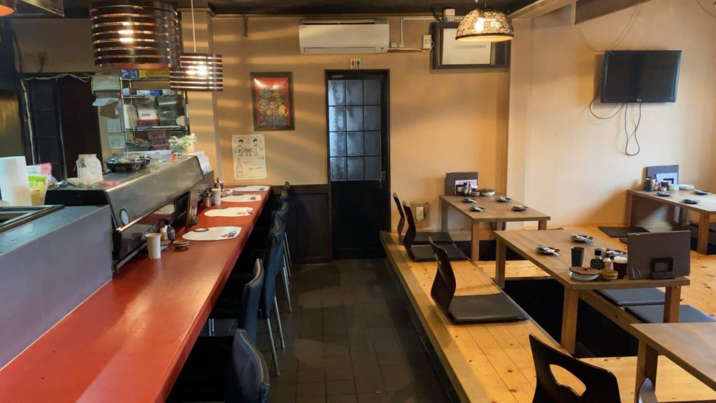 カウンターに9席と、4人用の掘りごたつが6つ、あと4人用のテーブルが1つありました。