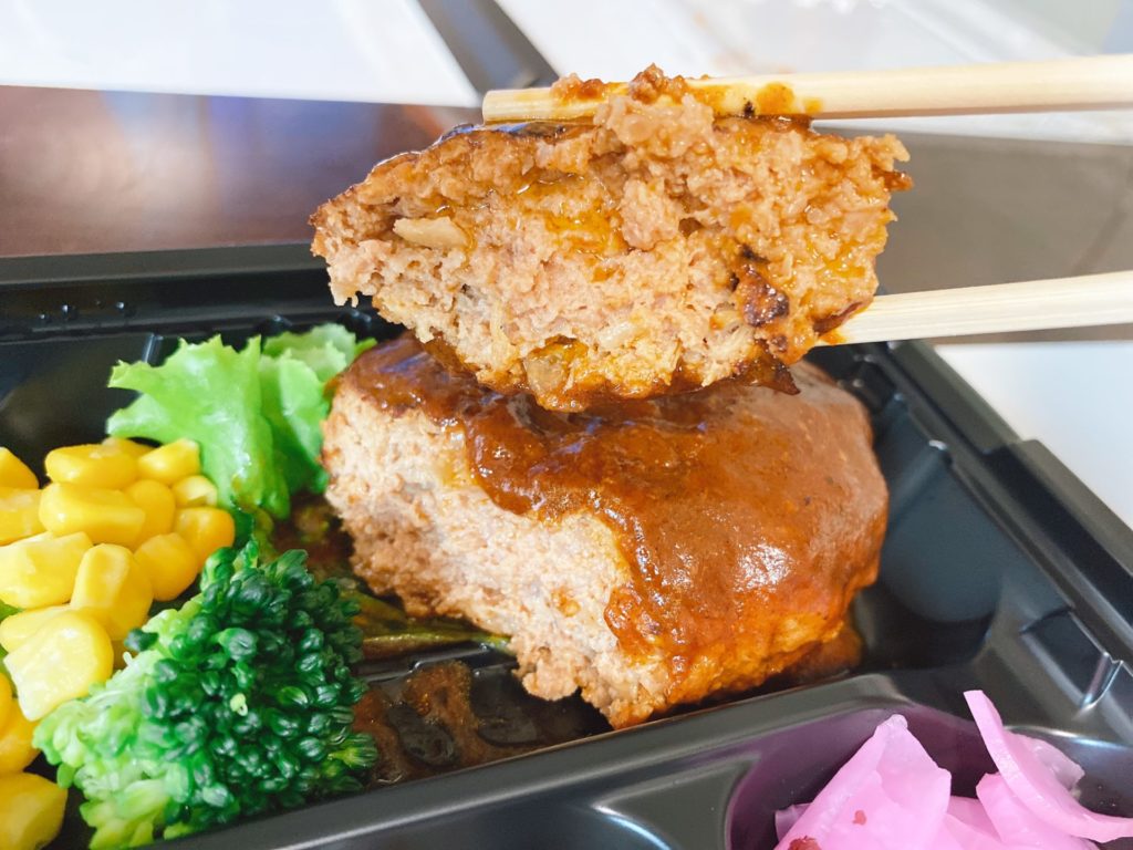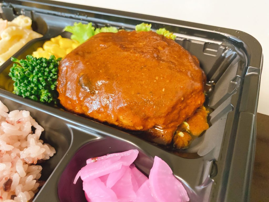 今日の日替り弁当はハンバーグ!テイクアウトランチでママビスコッティの味が楽しめる