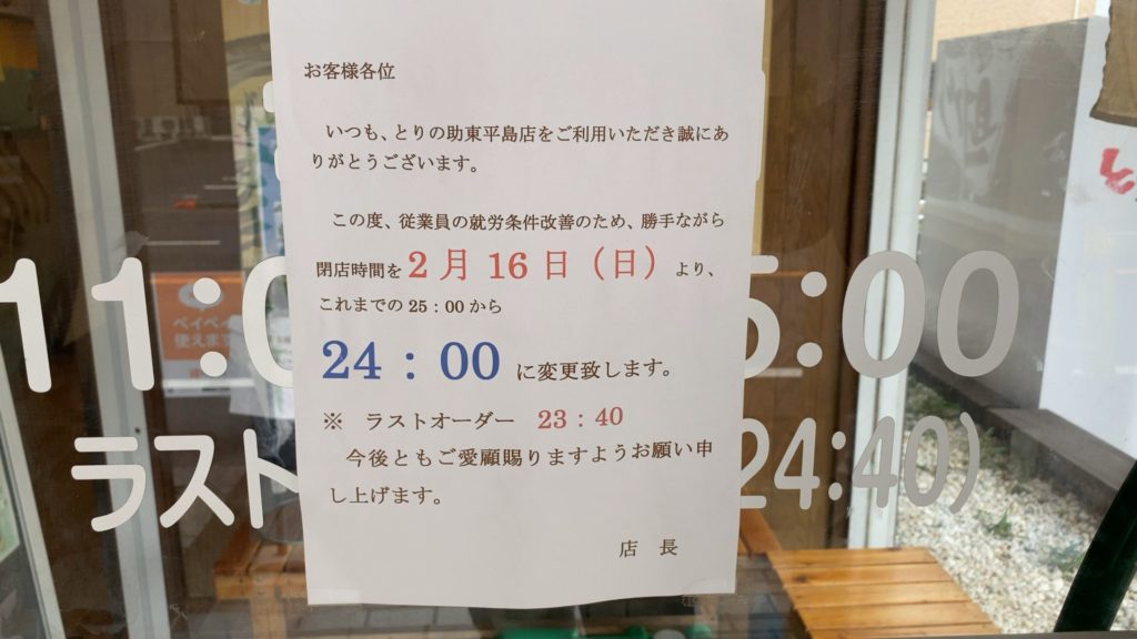 2022年2月12日、とりの助 東平島店が閉店しているのを確認しました。